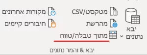 שלב 1 : טעינת הטבלה לתוך החלונית Power Query